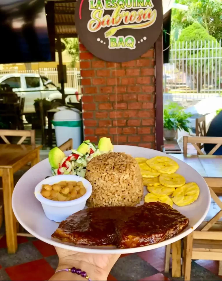 Cerdo 259gr, carne 250gr, chicharron, pollo arabe, maduro, yuca o patacón.